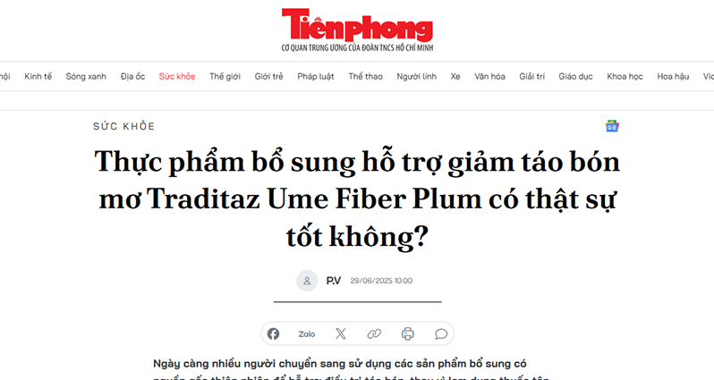 “Trước đây tôi thường xuyên bị táo bón do ngồi nhiều. Sau này biết đến Traditaz Ume, việc đi vệ sinh không còn là nỗi ám ảnh nữa, người cũng thấy nhẹ nhàng hơn.”